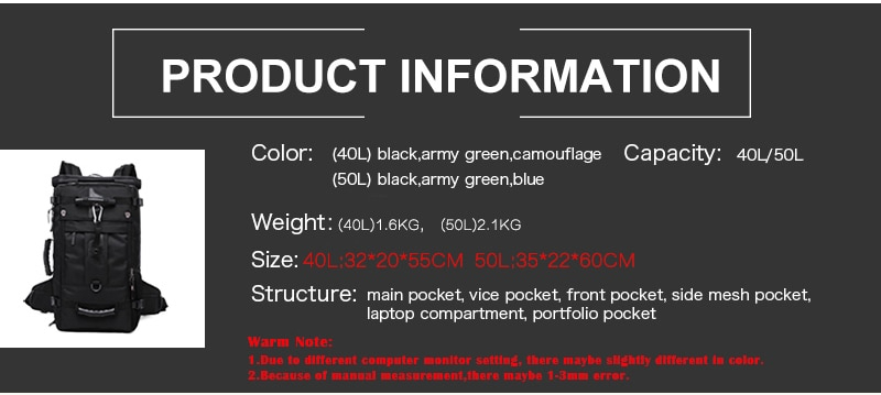 Balo Du Lịch Dã Ngoại Chống Nước Đa Năng 40L/50L KAKA