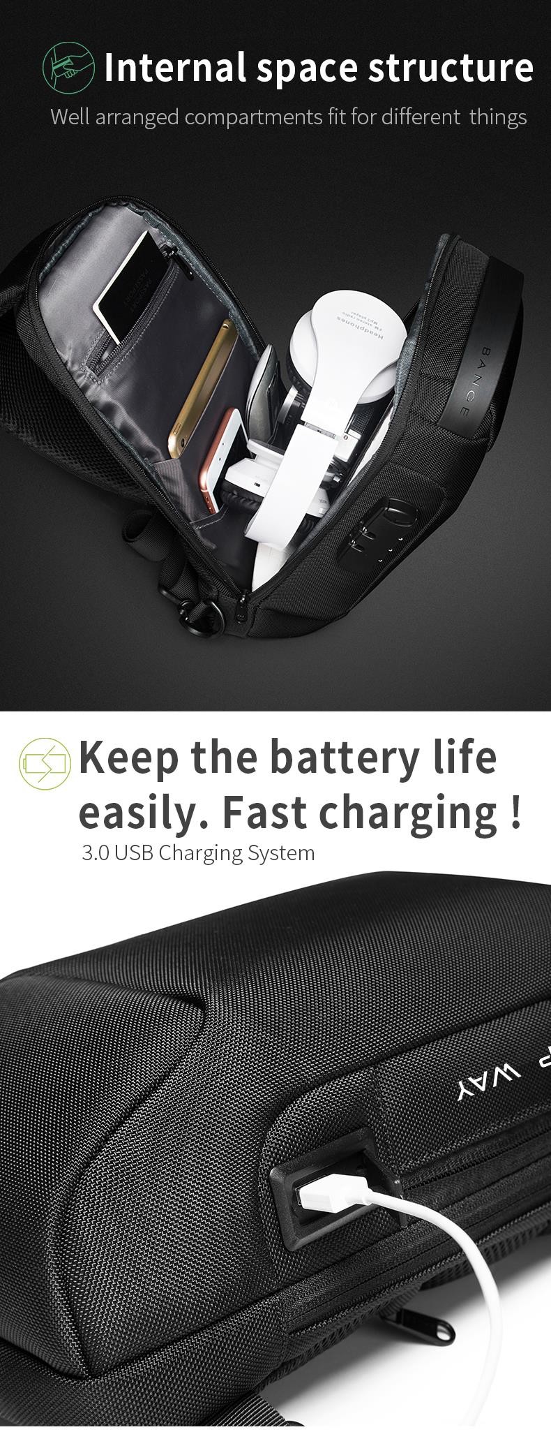 Túi đeo chéo công nghệ chống trộm chống nước Bange BG-22085